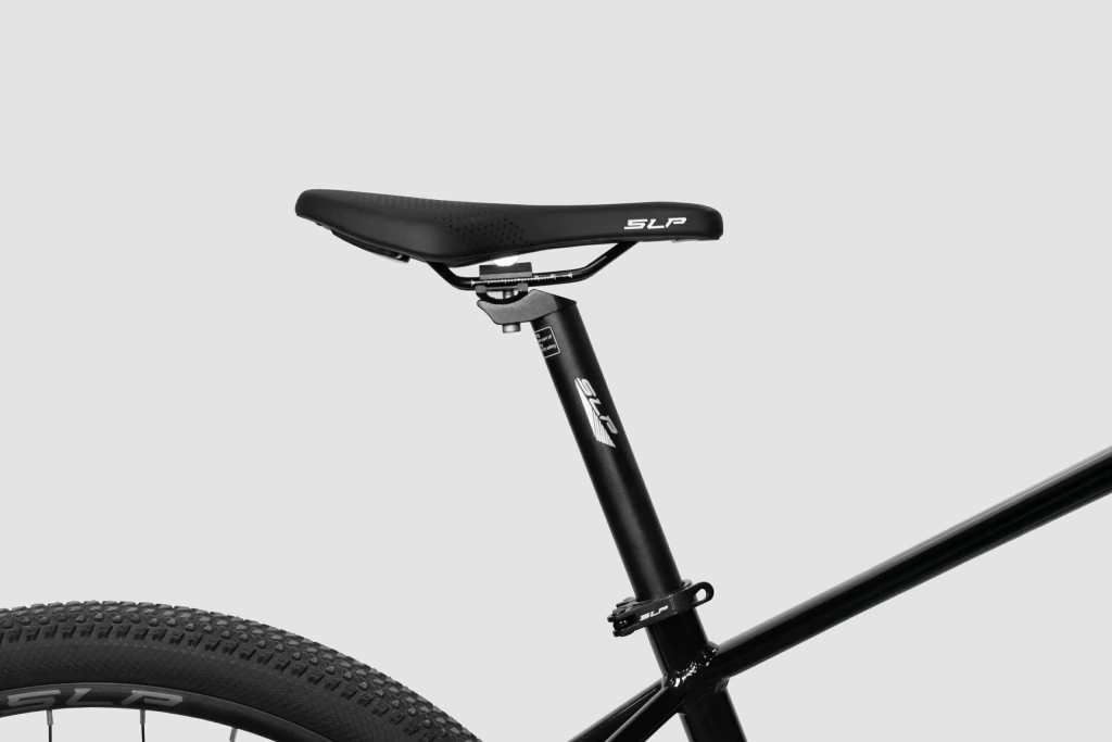 Componentes: pedal, pie regulable, stem, forma y portasilla MTB en aluminio SLP.