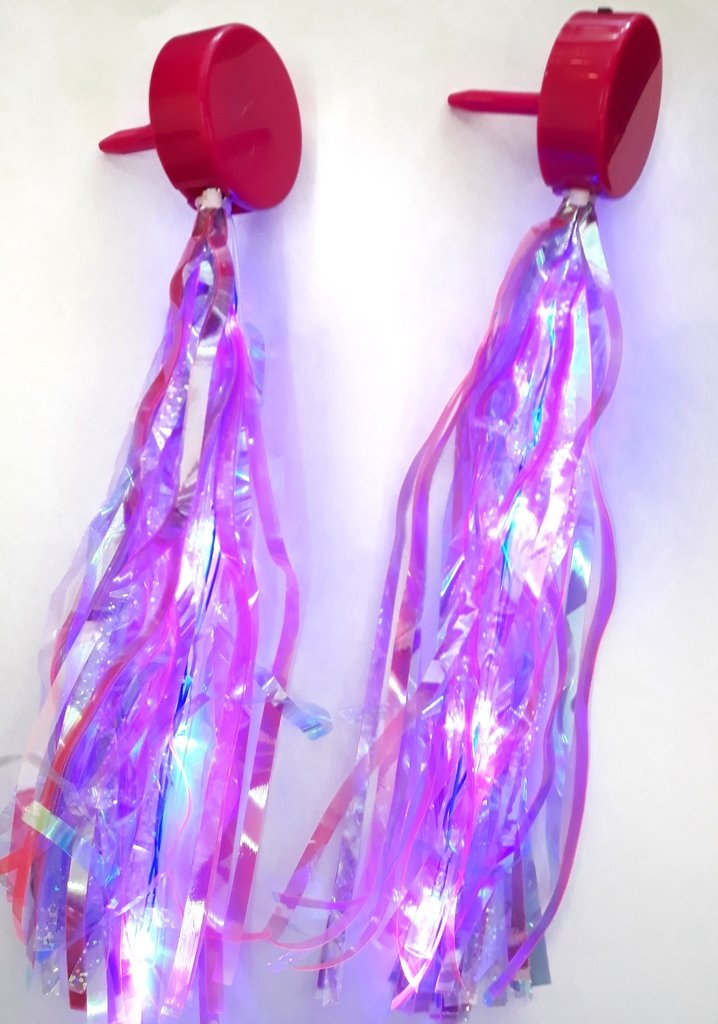 Gracias por visitar nuestra tienda. Dale un toque especial y brillante a la bicicleta de tu nena con estos hermosos flecos con luz LED. ¡Ideales para decorar, jugar y pedalear con estilo!