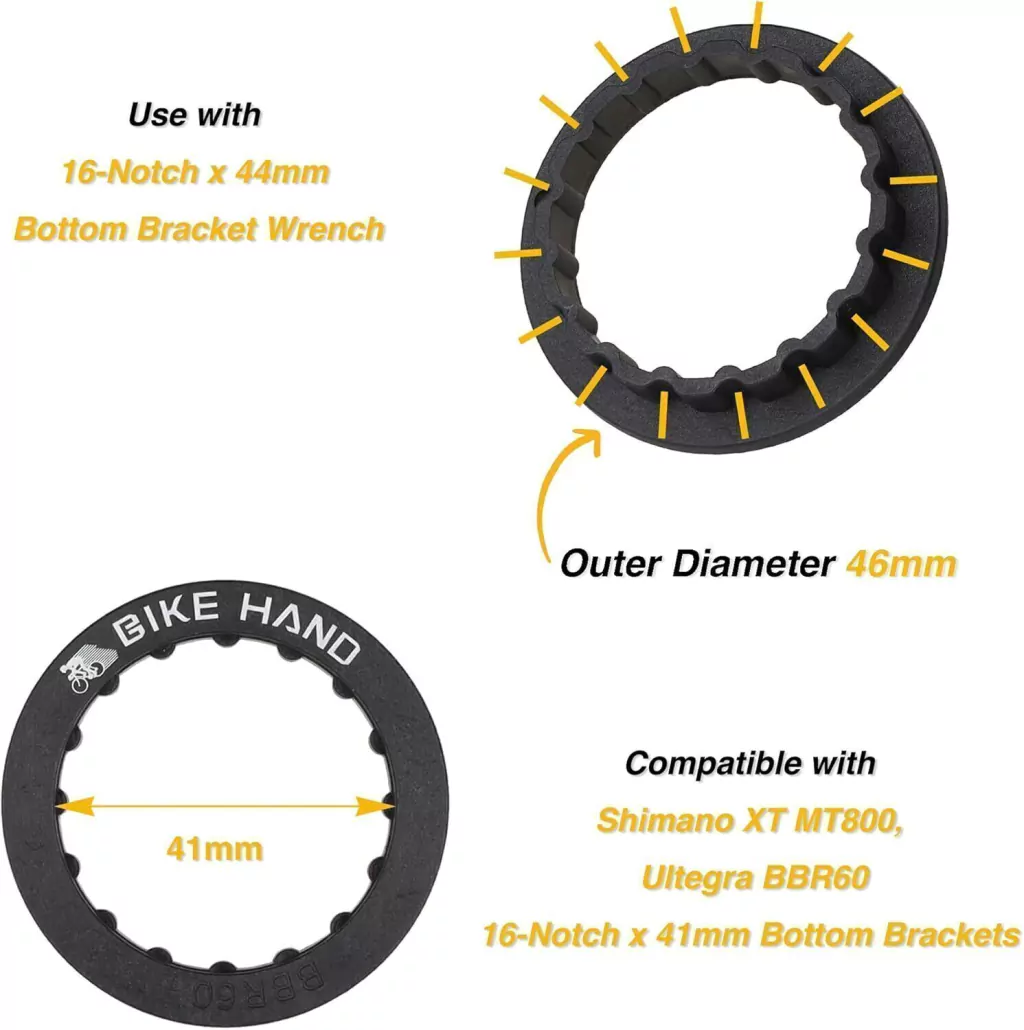 - Lo que se combina con esto: úsalo con la llave inglesa de soporte inferior Hollowtech II BIKE HAND de 16 muescas x 1.732 in es muy recomendable, como Herramienta Bikehand Para Ajustar Cajas Shimano Hollowtech2