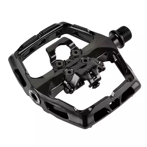 ¿Plataforma o sin traba? A veces necesitas ambos. Nuestro diseño de doble acceso permite a los ciclistas sumergirse en terrenos desconocidos con confianza. 8 pines en el lado plano brindan mucha tracción y la agarre de seguridad frontal de gran tamaño facilita el encaje.