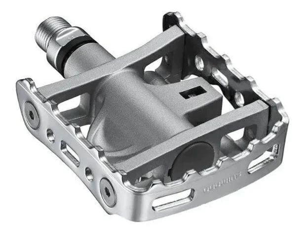 Los Shimano M324 son pedales híbridos que te permiten disfrutar lo mejor de dos mundos: la eficiencia de un pedal automático SPD en un lado y la libertad de un pedal de plataforma tradicional en el otro. Ideales para quienes se inician en el uso de calas o buscan polivalencia en salidas urbanas, gravel, touring o commuting.